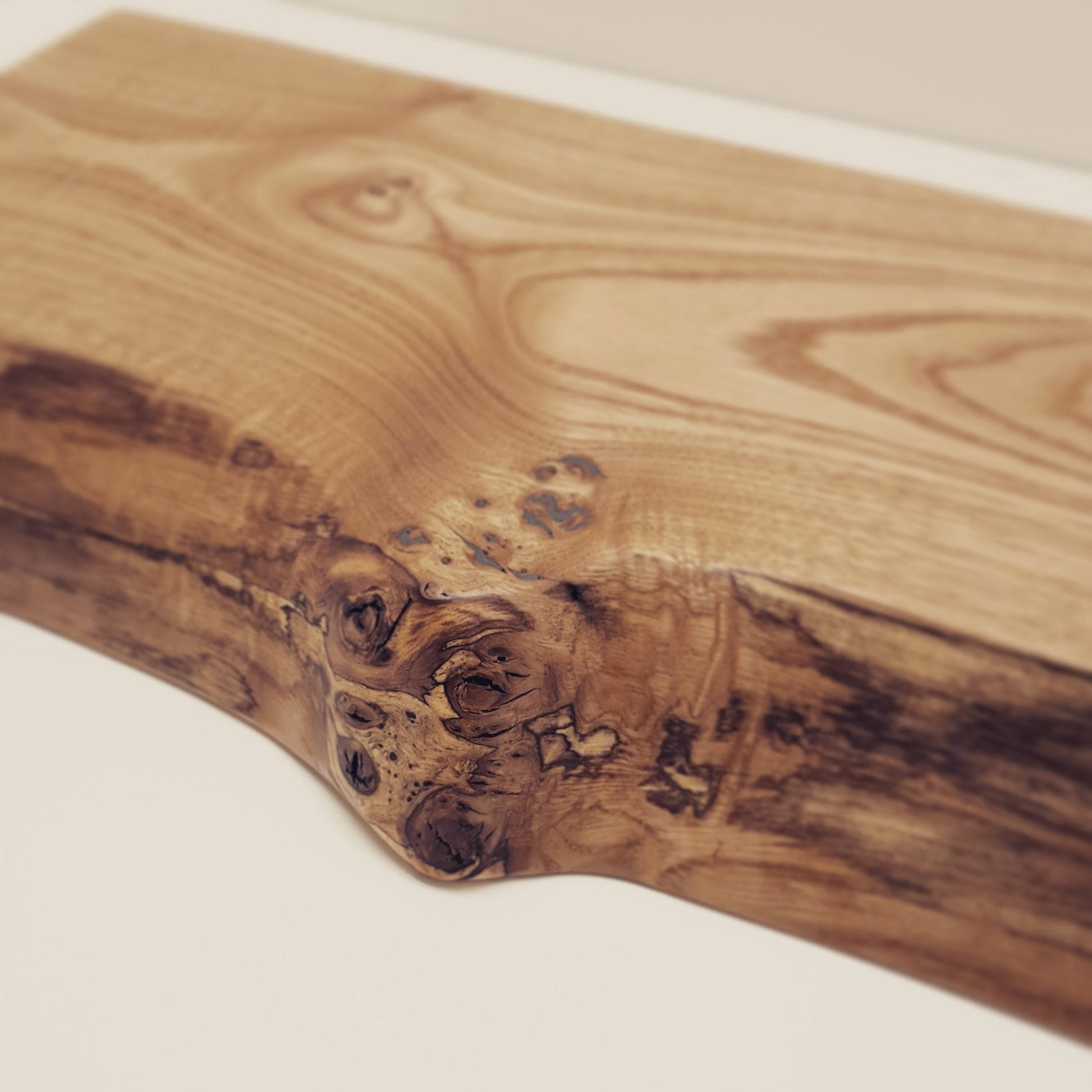 Experience the exquisite beauty of our live edge ash chopping board, handcrafted in our workshop using timber from our own woodland on the Isle of Wight! Savor the unique character and quality of this one-of-a-kind piece.